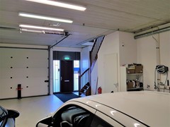 De bedrijfsruimte heeft een totale oppervlakte van circa 130 m², verdeeld over twee verdiepingen. De begane grond (ca. 70 m²) is geschikt als bedrijfsruimte of opslag en beschikt over een elektrische overheaddeur, wat het laden en lossen zeer praktisch maakt. De eerste verdieping (ca. 60 m²) is ingericht als kantoor-/bedrijfsruimte en biedt een comfortabele werkplek.