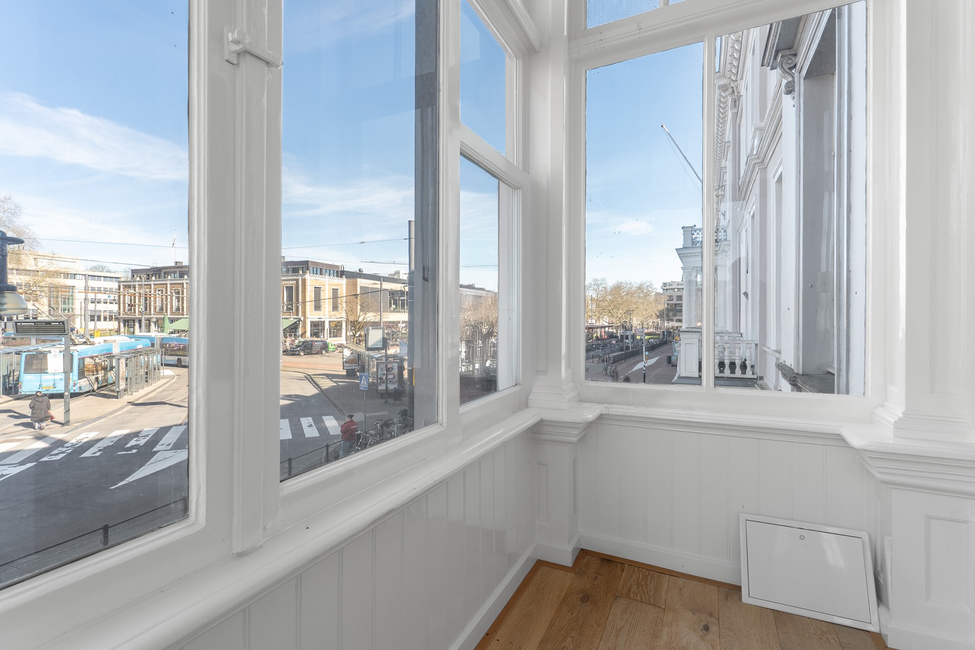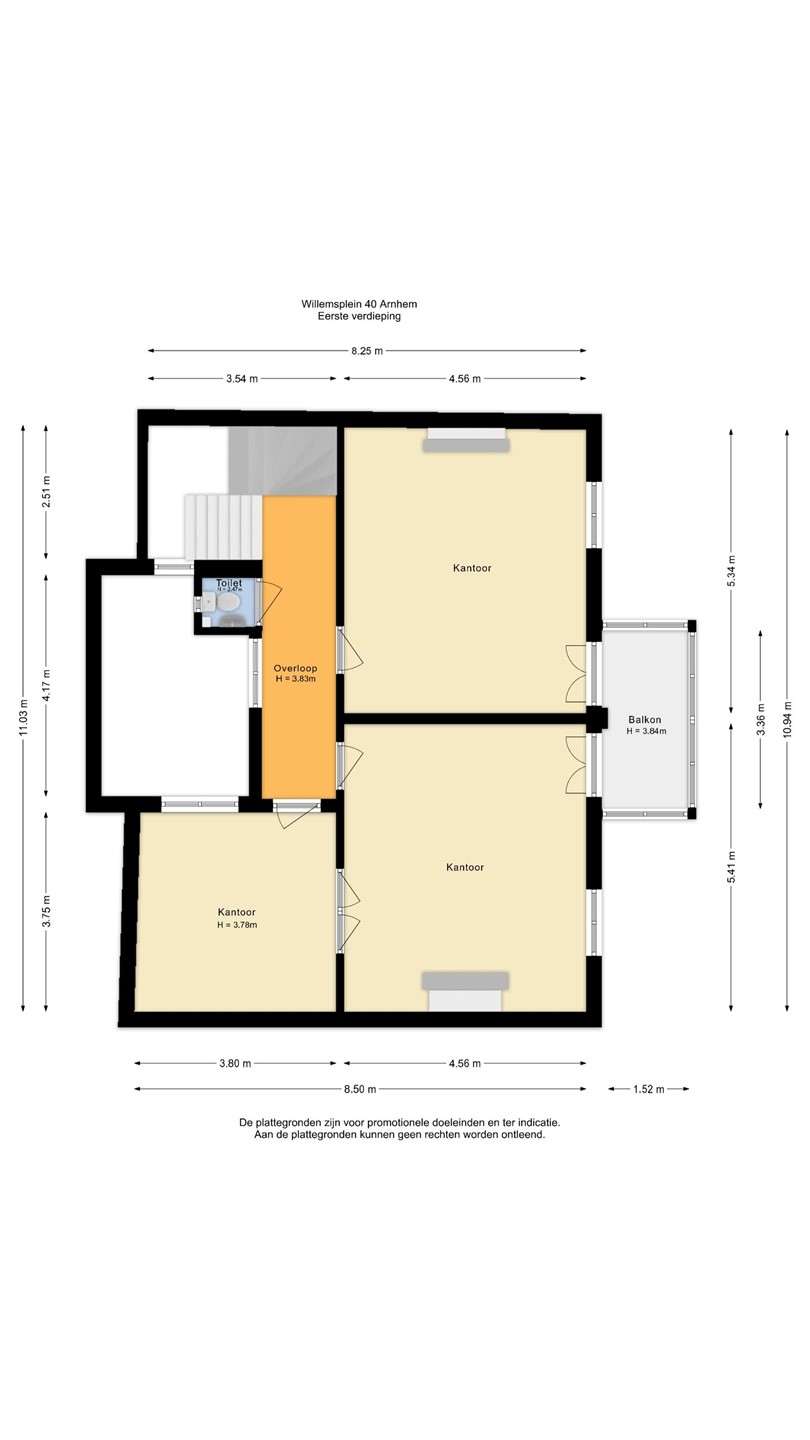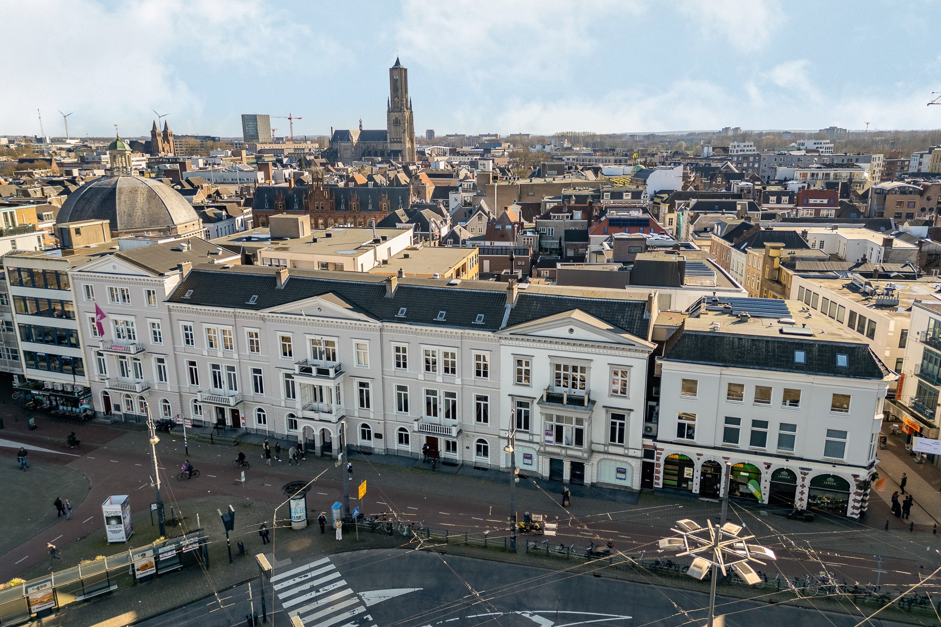 Het pand is gelegen direct aan het Willemsplein tegenover de bussen in het centrum van Arnhem . Schuin tegenover het Centraal Station. Verschil