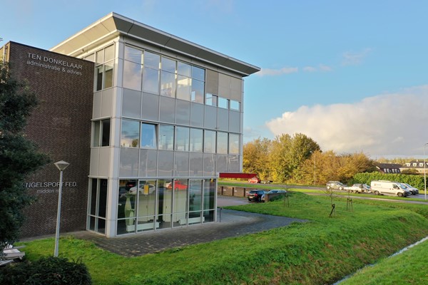 Hoogwaardig kantoorcomplex met kantoren waarvan nu op de 1e verdieping een kantoorruimte van ca. 190 m2 te koop is. Bij het kantoor behoren 2 eigen parkeerplaatsen en een aantal vrije parkeerplaatsen op eigen terrein.