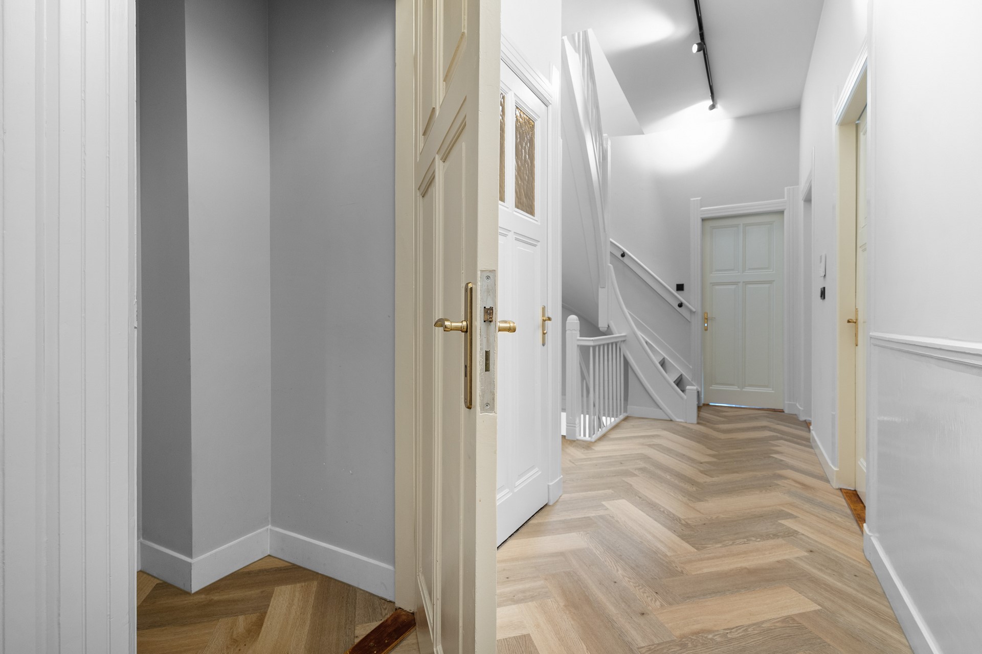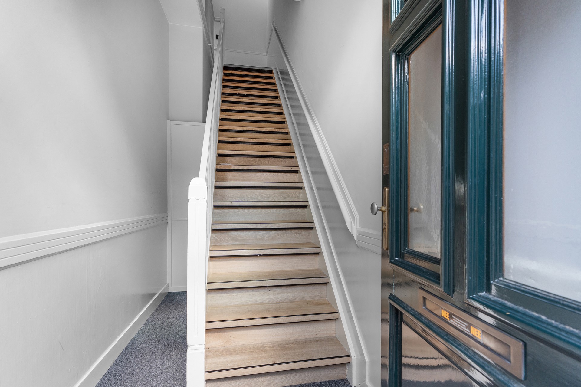 Eigen entree, vernieuwde meterkast, opslagkelder en trapopgang naar de woning.