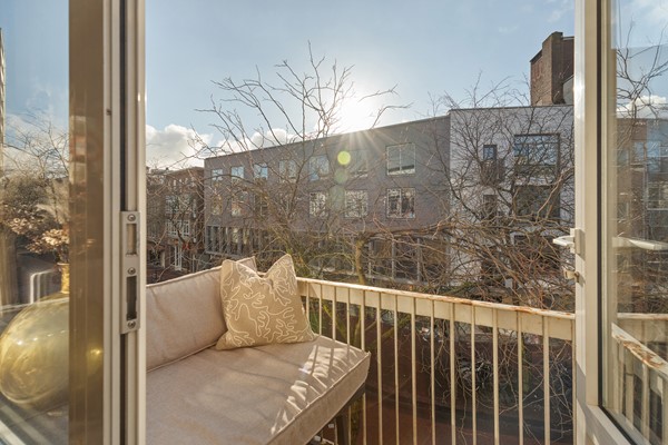 De maisonnette beschikt over twee balkons van ieder circa 2 m². Het balkon aan de voorzijde ligt op het zuiden en kijkt uit op het levendige straatbeeld van de binnenstad. Een fijne plek voor een kop koffie in de ochtend of een wijntje in de avond. Het tweede balkon grenst aan de keuken, ligt op het westen en kijkt uit op een rustige zijstraat, waardoor je hier aangenaam beschut zit.