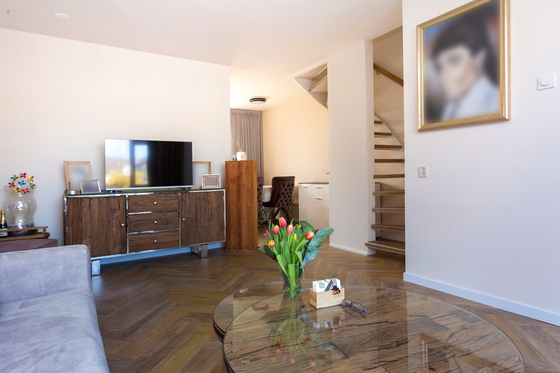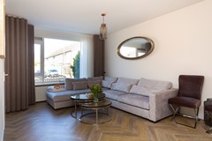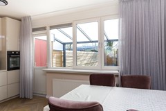 Bij binnenkomst in de halt treft u een keurig moderne toiletruimte met fonteintje welke gemoderniseerd is. Er is een moderne meterkast en een ruime lichte netjes afgewerkte woonkamer met een open trap naar de eerste verdieping. De halfopen eetkeuken zorgt voor een gezellige sfeer in het huis. Deze inbouwkeuken beschikt over een combimagnetron, een afzuigkap, een vaatwasser en een inductiekookplaat. De keuken grenst aan een open luxe serre /veranda, die het gemak biedt voor een "droge" zit en barbecueruimte.