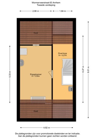 Deze bereikt u via een vaste trap. Hier vind u een 4e slaap/werkkamer met een groot dakraam. Op deze verdieping zit ook de aansluiting voor de wasmachine. De cv opstelling is hier ook geplaatst. Daarnaast is er zolderberging.