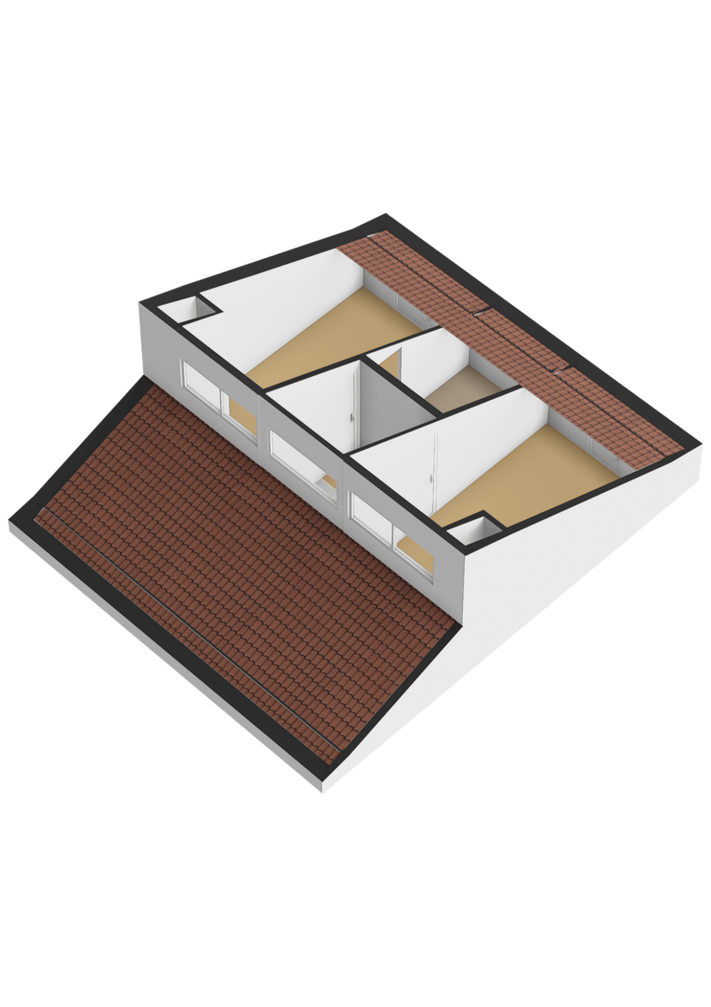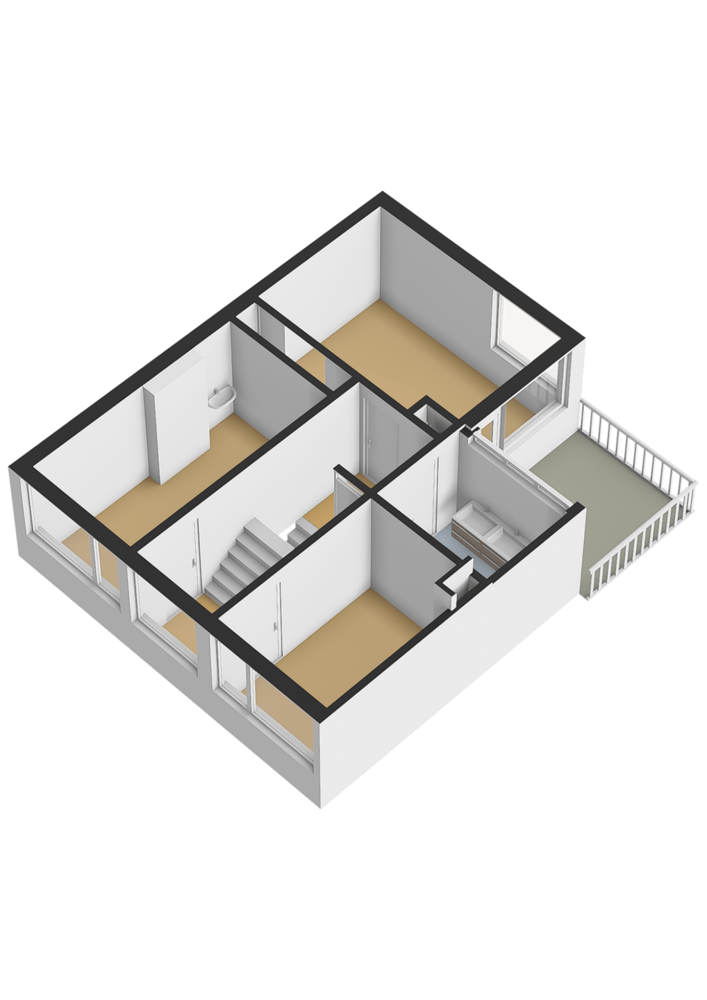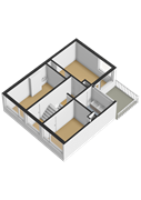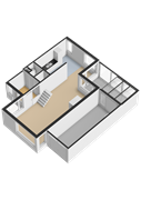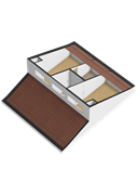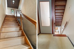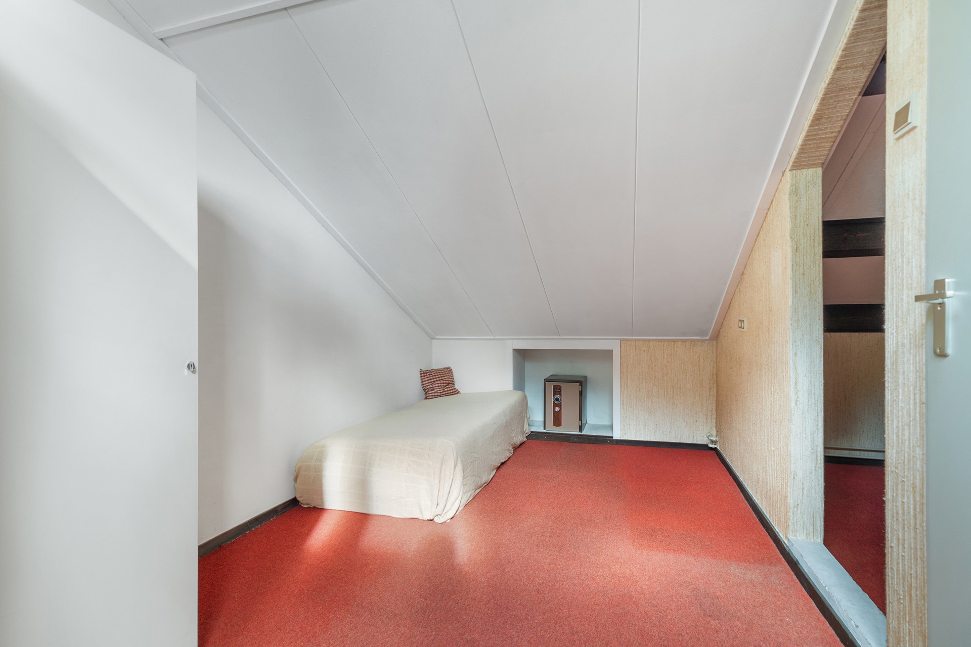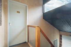 Overloop met bergruimte achter de knieschotten. Twee slaapkamers en een aparte berging met wastafel.