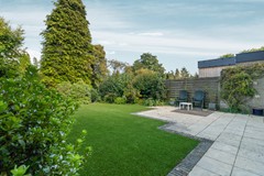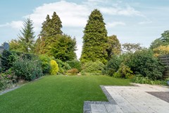 De ruime, groene achtertuin biedt volop privacy en speelmogelijkheden. Aan de achterzijde is er de mogelijkheid voor een poort richting het schuin achtergelegen speeltuintje. Aan de voorzijde is er een eigen oprit naar de zeer ruime garage.