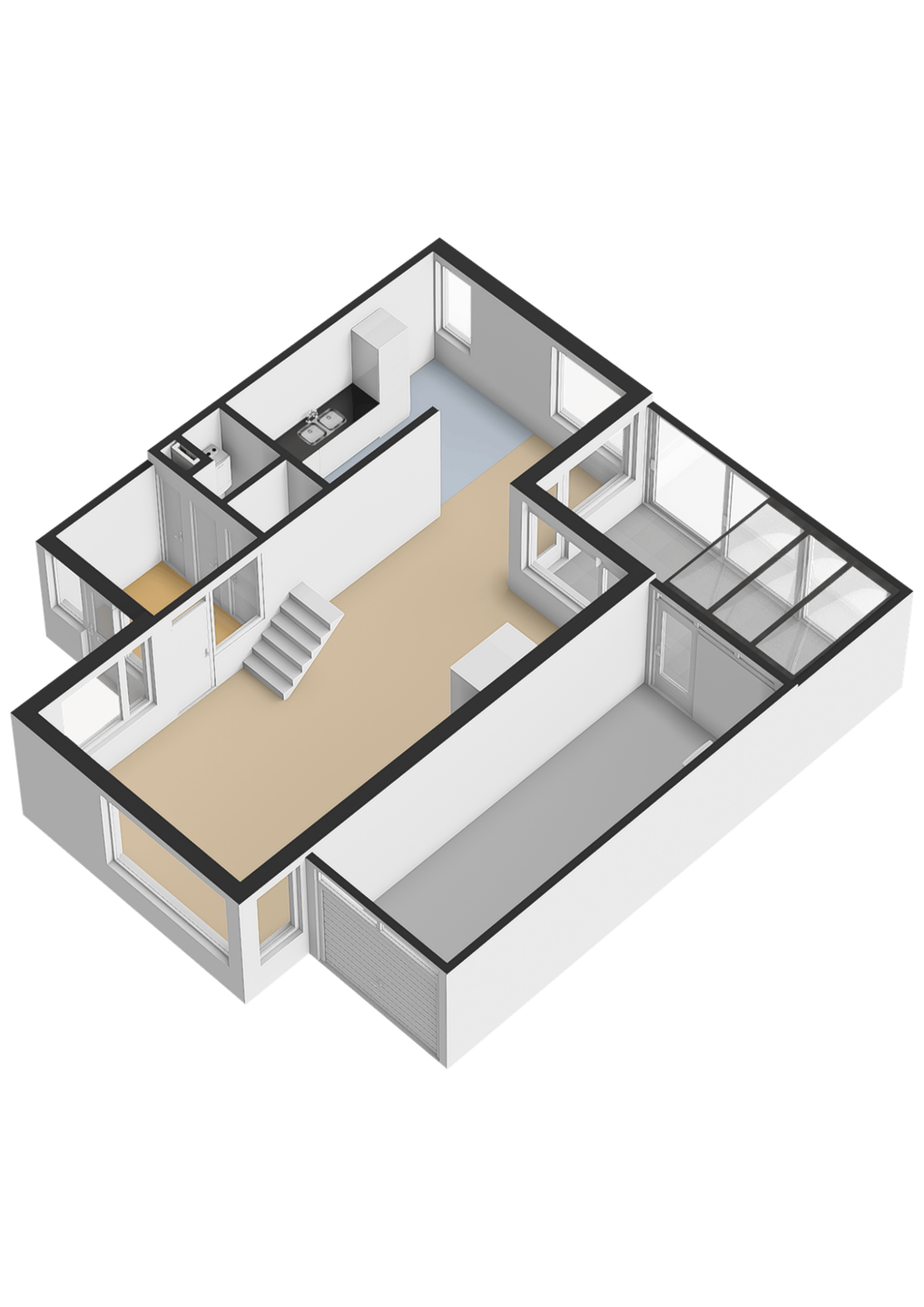 - Semi open keuken met inbouwapparatuur en doorloop naar de serre met fraai uitzicht.